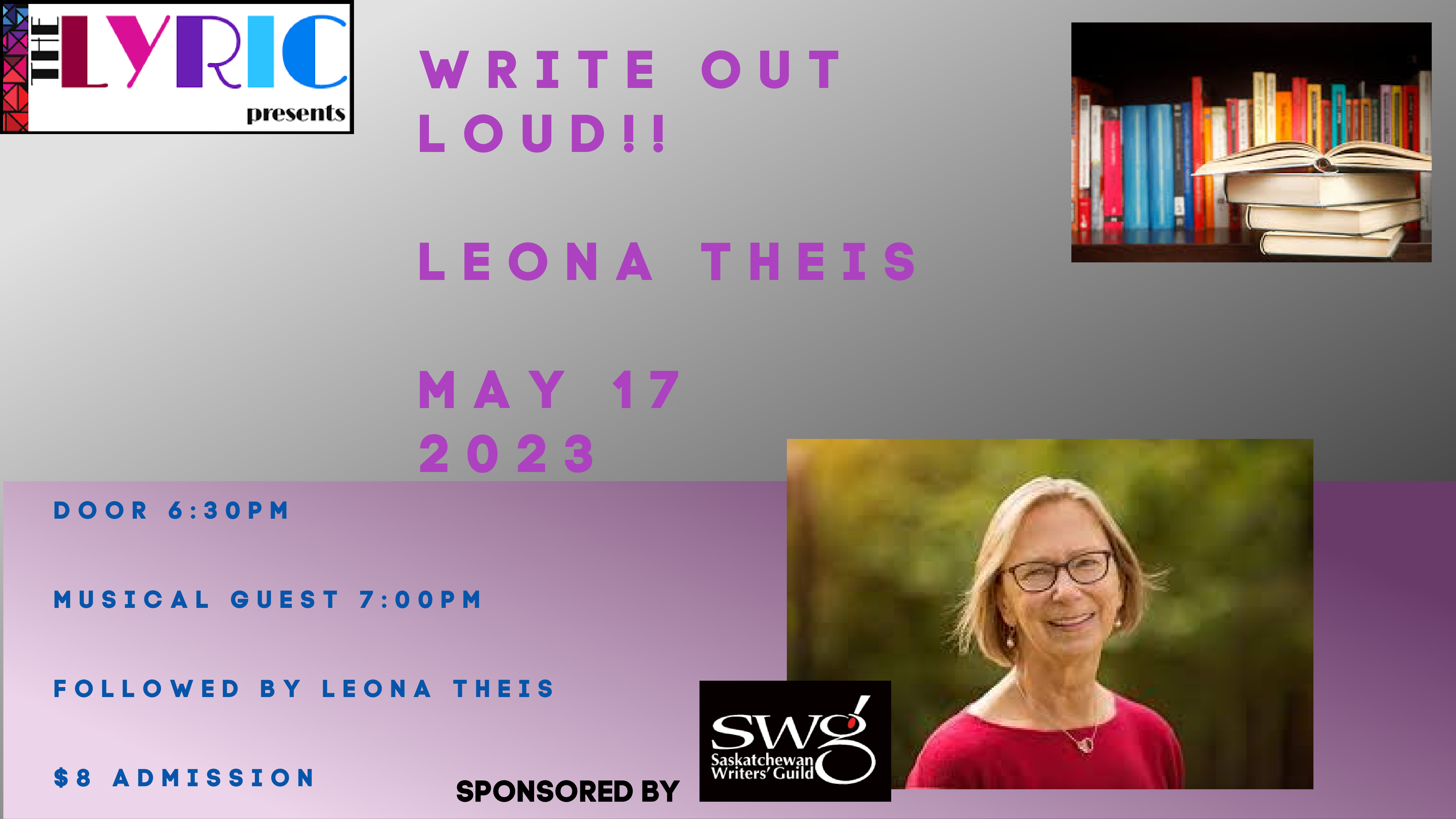 Doors at 630pm Musical Guest starts 7pm with the featured author to follow. $8 Admission