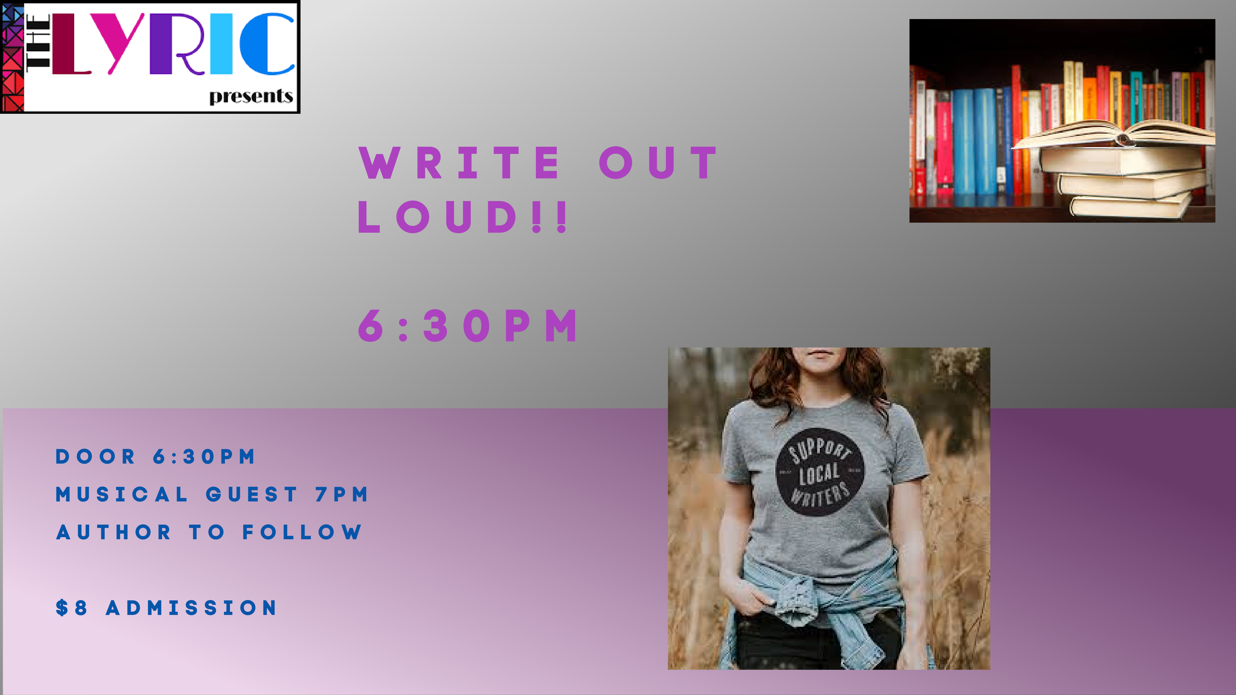 Doors at 630pm Musical Guest starts 7pm with the featured authors to follow. $8 Admission