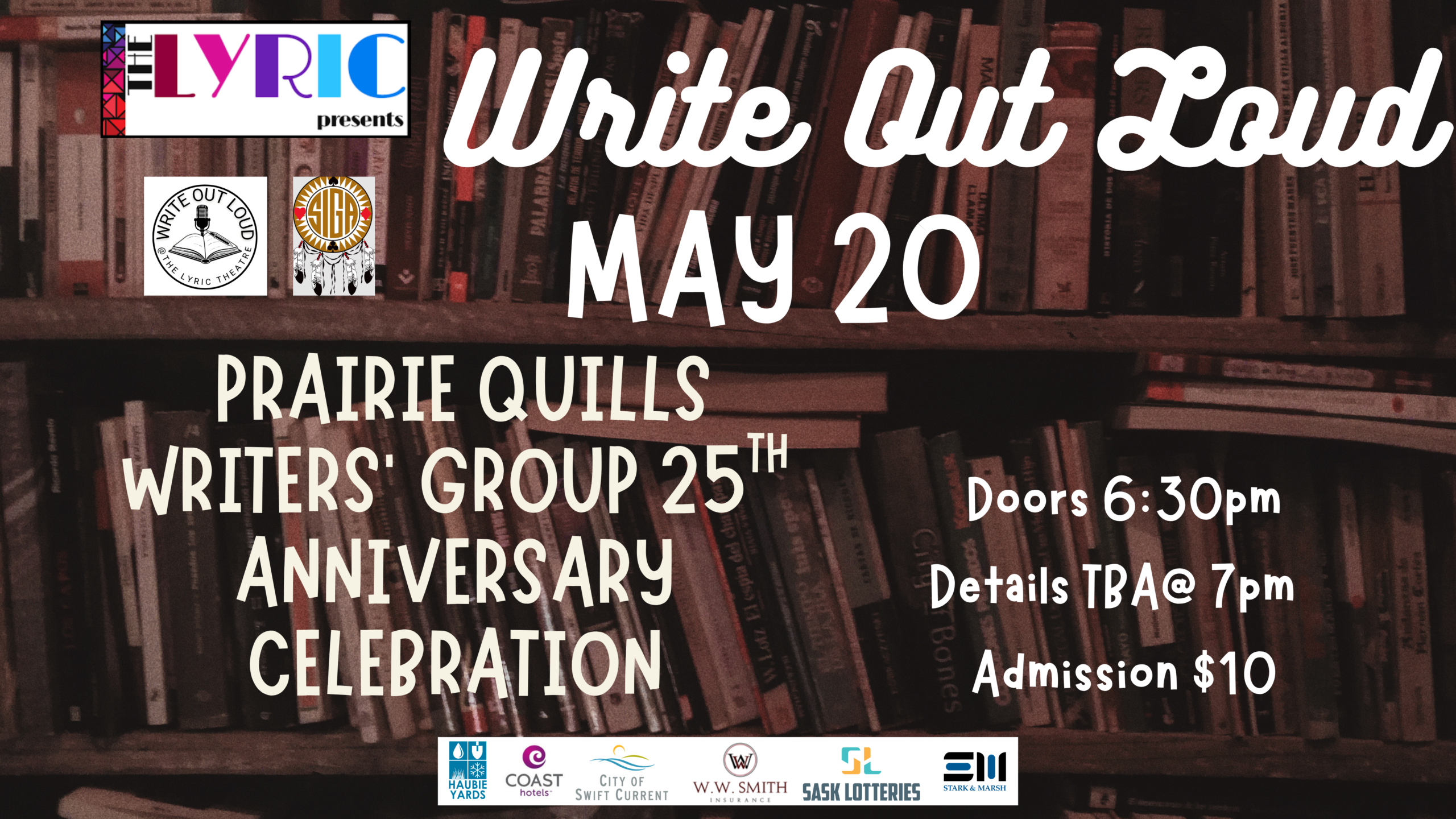 Prairie Quills Writers’ Group 25th Anniversary celebration Doors @ 6:30pm $10 Admission Opener @ 7pm Author to Follow Event Sponsors